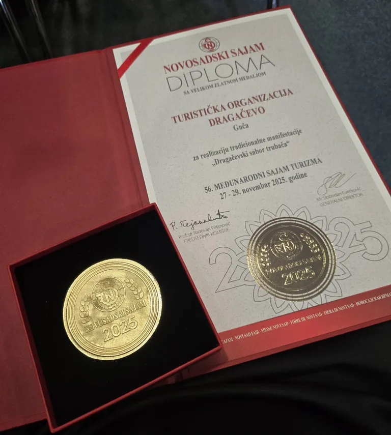 U okviru svečane manifestacije „Veče šampiona“, ovogodišnje prestižno priznanje – „Velika zlatna medalja“ – pripalo je Dragačevskom saboru trubača u Guči. Nagradu je u ime organizacije primila Aleksandra Mitrović, direktorka Turističke organizacije „Dragačevo“.